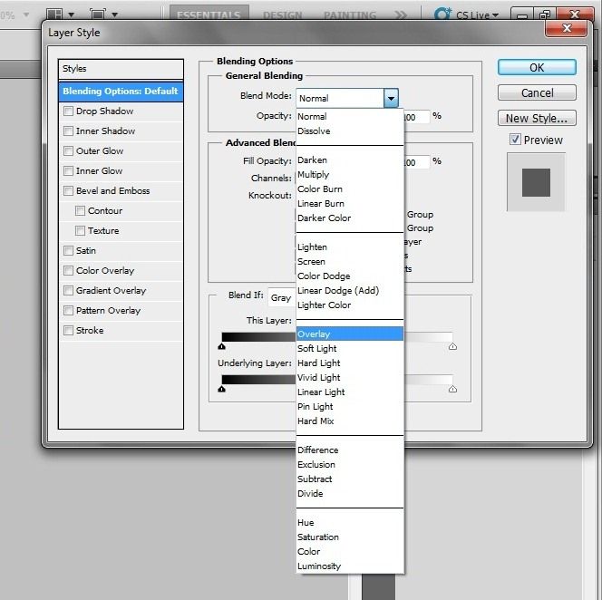 Clik OK and go to layer pallete and change the blending mode. select Overlay